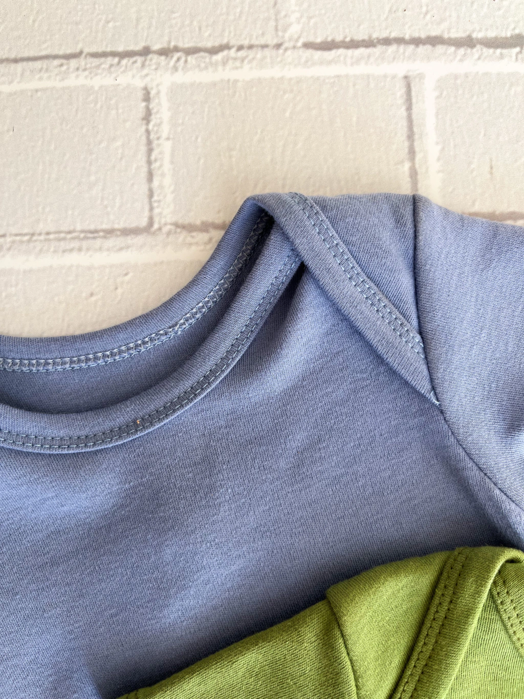 O body NIDO Colors de suedine light 100% algodão certificado. A modelagem transpassada nos ombros permite vestir o bebê com mais facilidade e retirar tanto por cima quanto por baixo caso seja necessario.